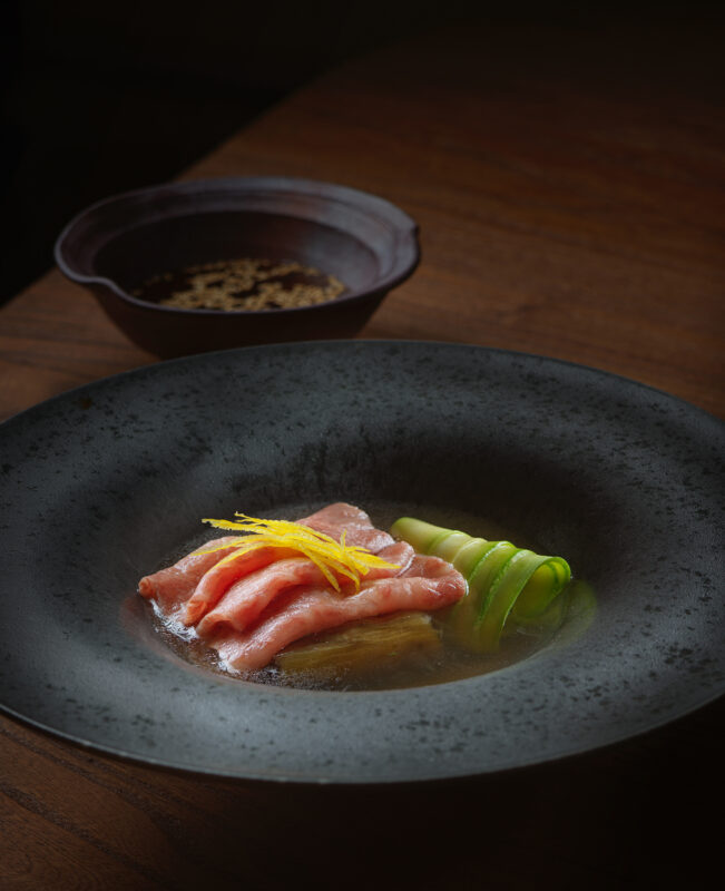 At GYU+bar by miyoshi, a custom lava rock kiln burning at 500°C is where the magic begins. Edible-grade lychee wood embers infuse every ingredient with a haunting, refined smokiness — locking in moisture, building extraordinary depth and delivering that unmistakable contrast of caramelised crust and tender, succulent heart. Fire is not just our method. It is our soul.