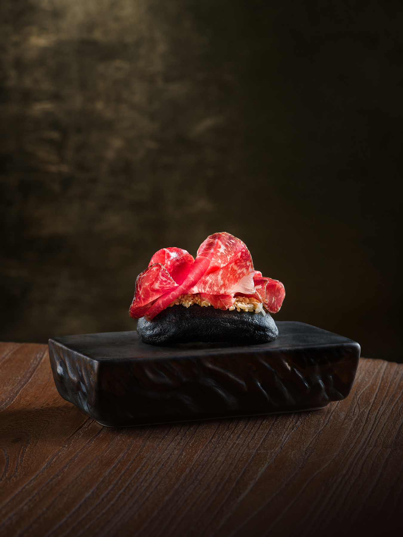 At GYU+bar by miyoshi, a custom lava rock kiln burning at 500°C is where the magic begins. Edible-grade lychee wood embers infuse every ingredient with a haunting, refined smokiness — locking in moisture, building extraordinary depth and delivering that unmistakable contrast of caramelised crust and tender, succulent heart. Fire is not just our method. It is our soul.